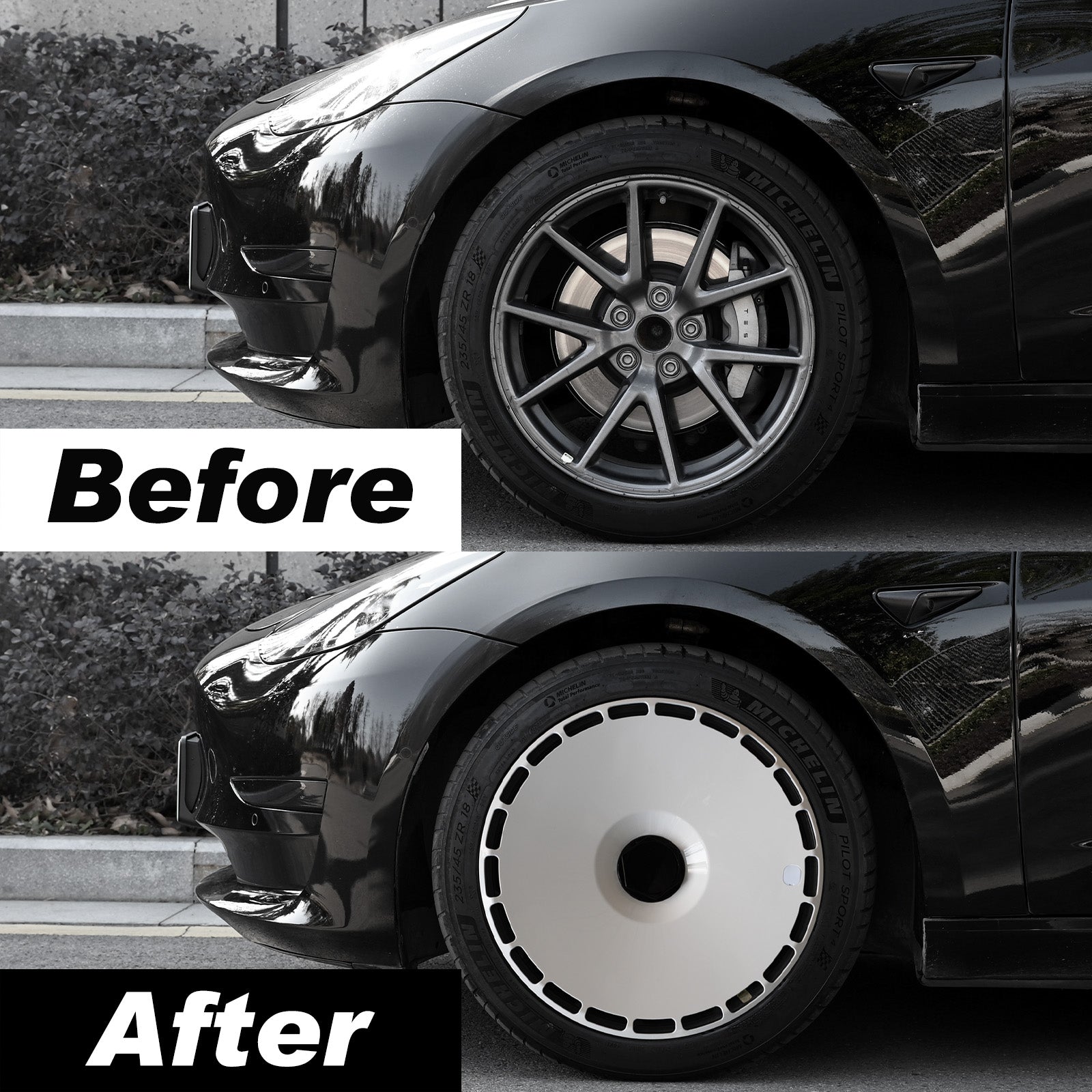 • Sporty Aesthetic Boost: Transform your Model 3 with our full coverage wheel covers that protect your rims from scratches. Perfectly aligned with Tesla’s minimalist design ethos, these Model 3 wheel covers add a sleek, sporty flair to your vehicle