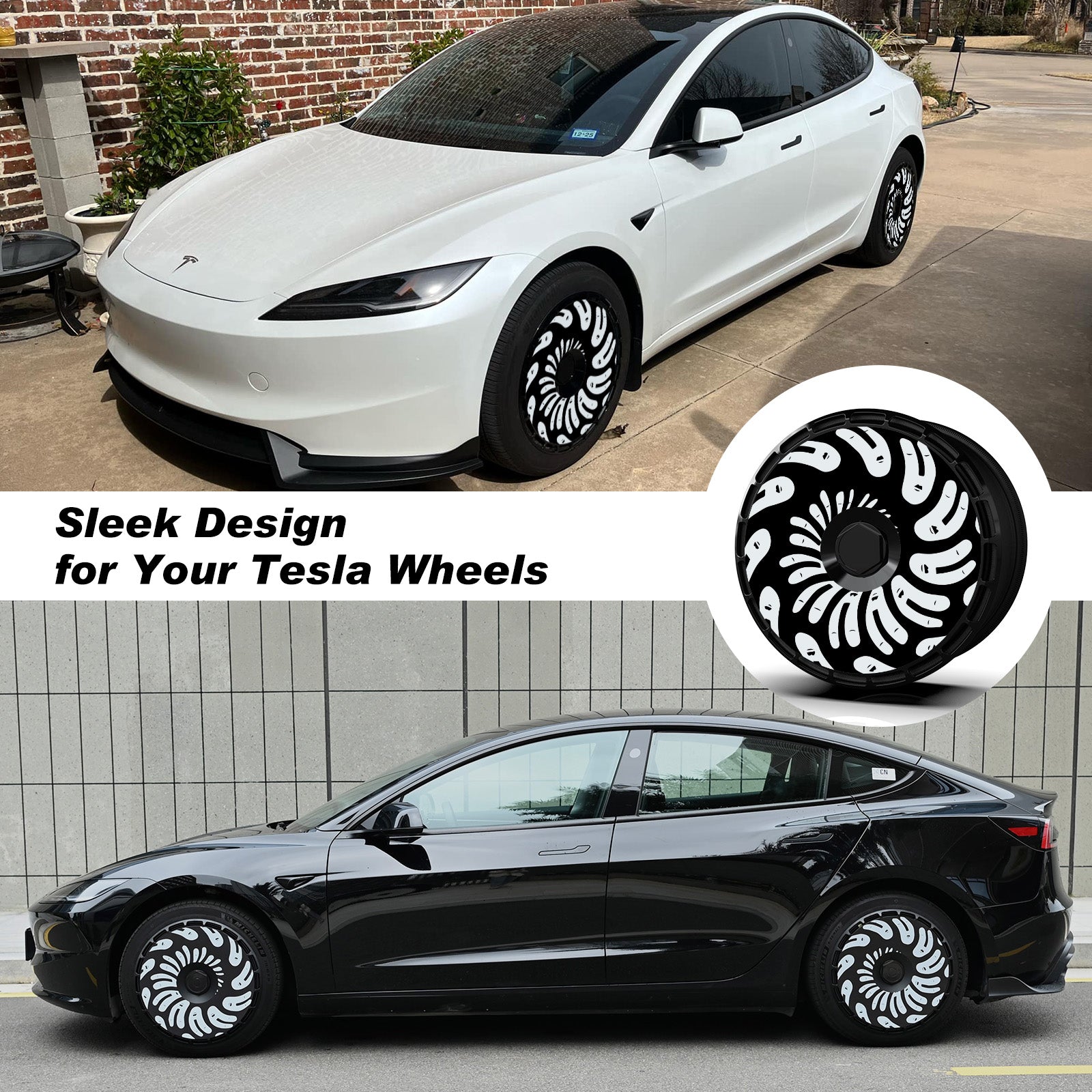 19/ 20 Inch Wheel Covers for Tesla Model Y Juniper Crossflow Wheels 2025, Centers Lock Installation Rim Protector, Full Coverage Hubcaps Exterior Accessories (0127, 4 PCS)