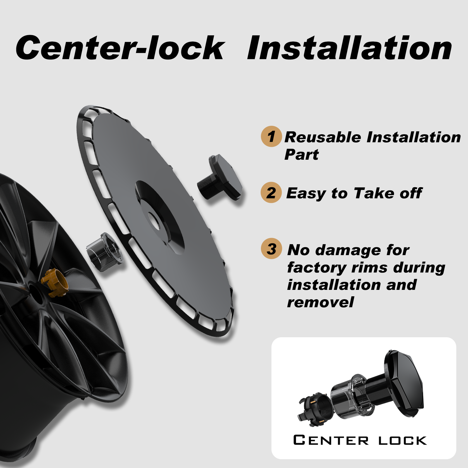 Unique Installation – These 19-inch hubcaps for the 2025 Model Y wheels incorporate a center lock design that minimizes potential damage to the hub during installation or removal. Simply snap the center lock into place and rotate to secure the covers firmly.