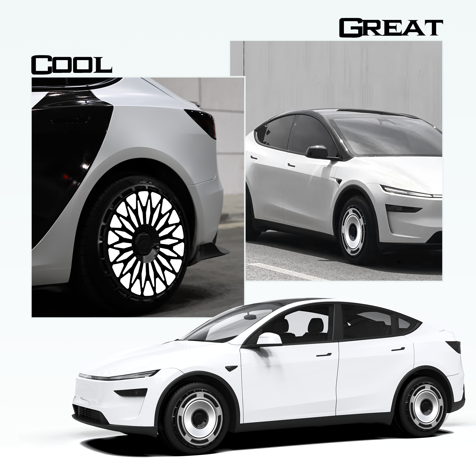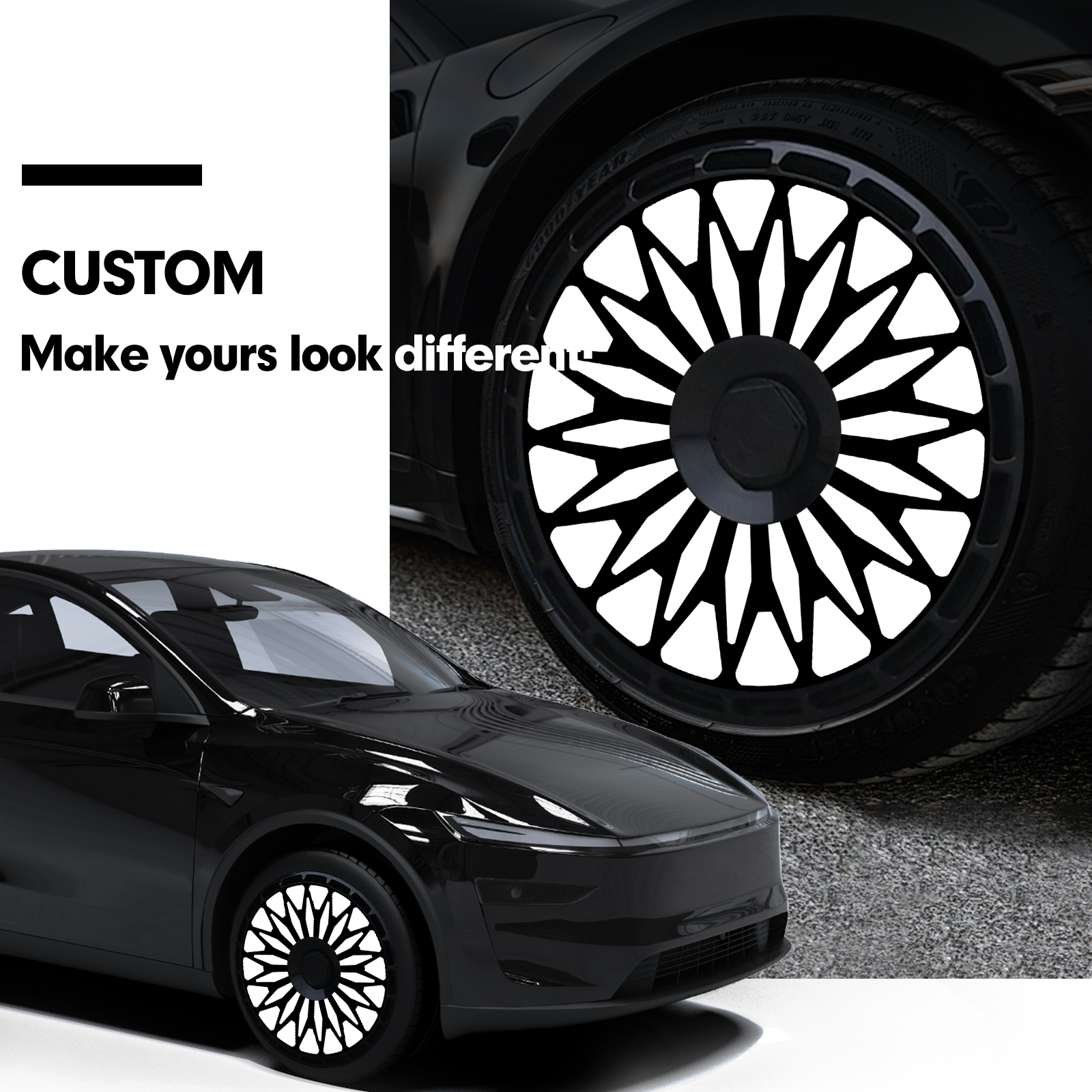 • Custom-Designed for Tesla Model Y Juniper 19-Inch Crossflow Wheels – These full-coverage hubcaps are custom-designed for the Tesla Model Y 19-inch Crossflow wheels, crafted precisely at a 1:1 scale to fit the original 19-inch wheel hub.