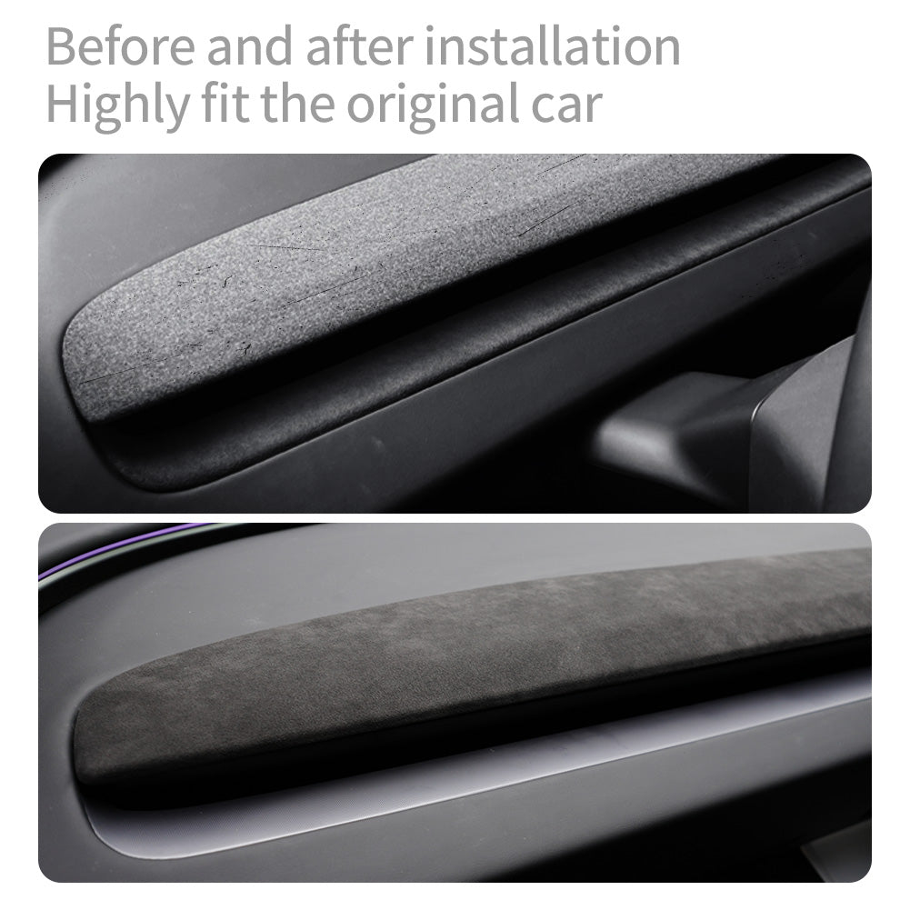 1.All Season Protection: This dashboard trim strip for car interior is made of soft Alcantara material, heat insulating and high temperature resistant, which can effectively block the summer heat from heating the dashboard cover. Interior inner door panel trim cover have wrinkle resistant and dustproof, keep your car dashboard cover in perfect condition