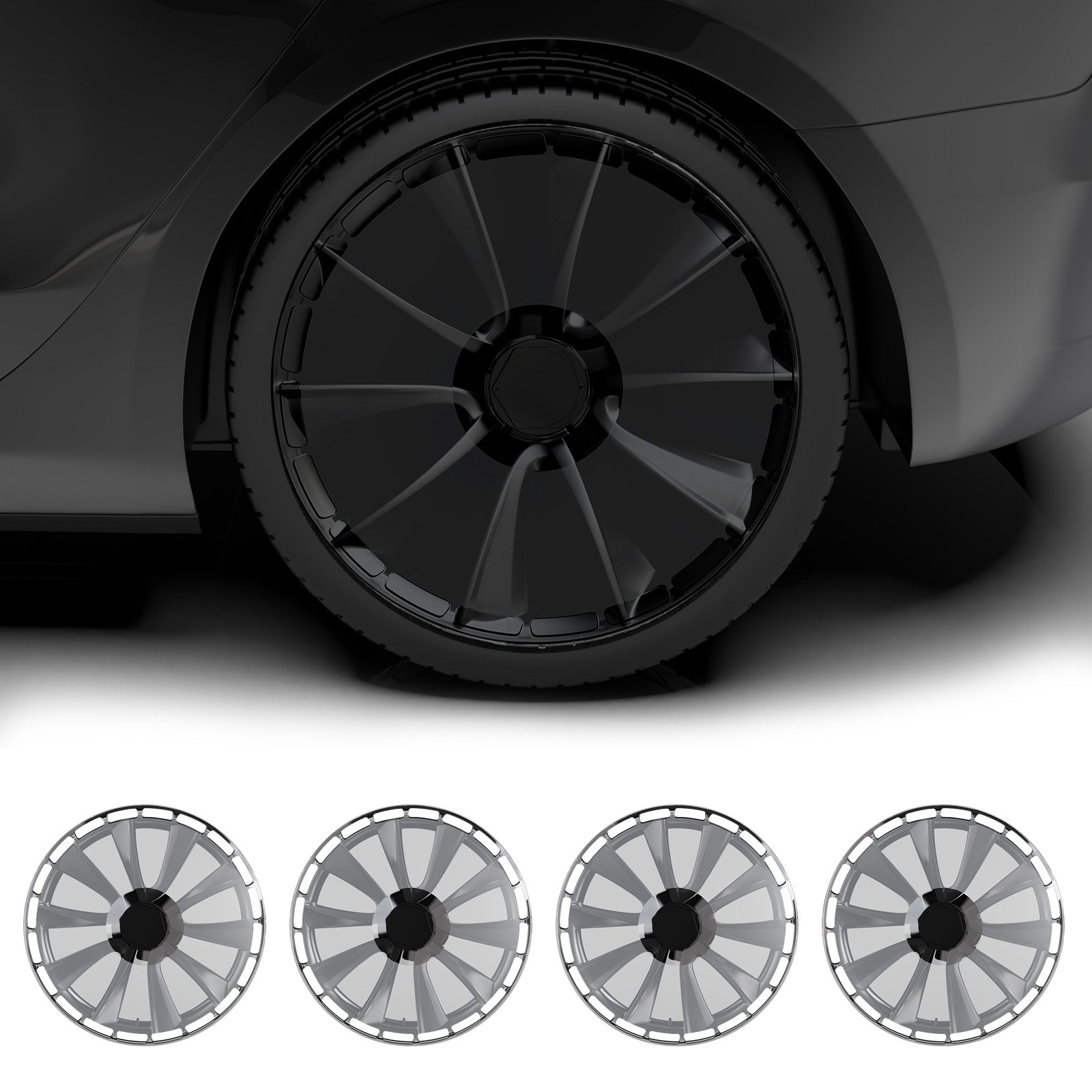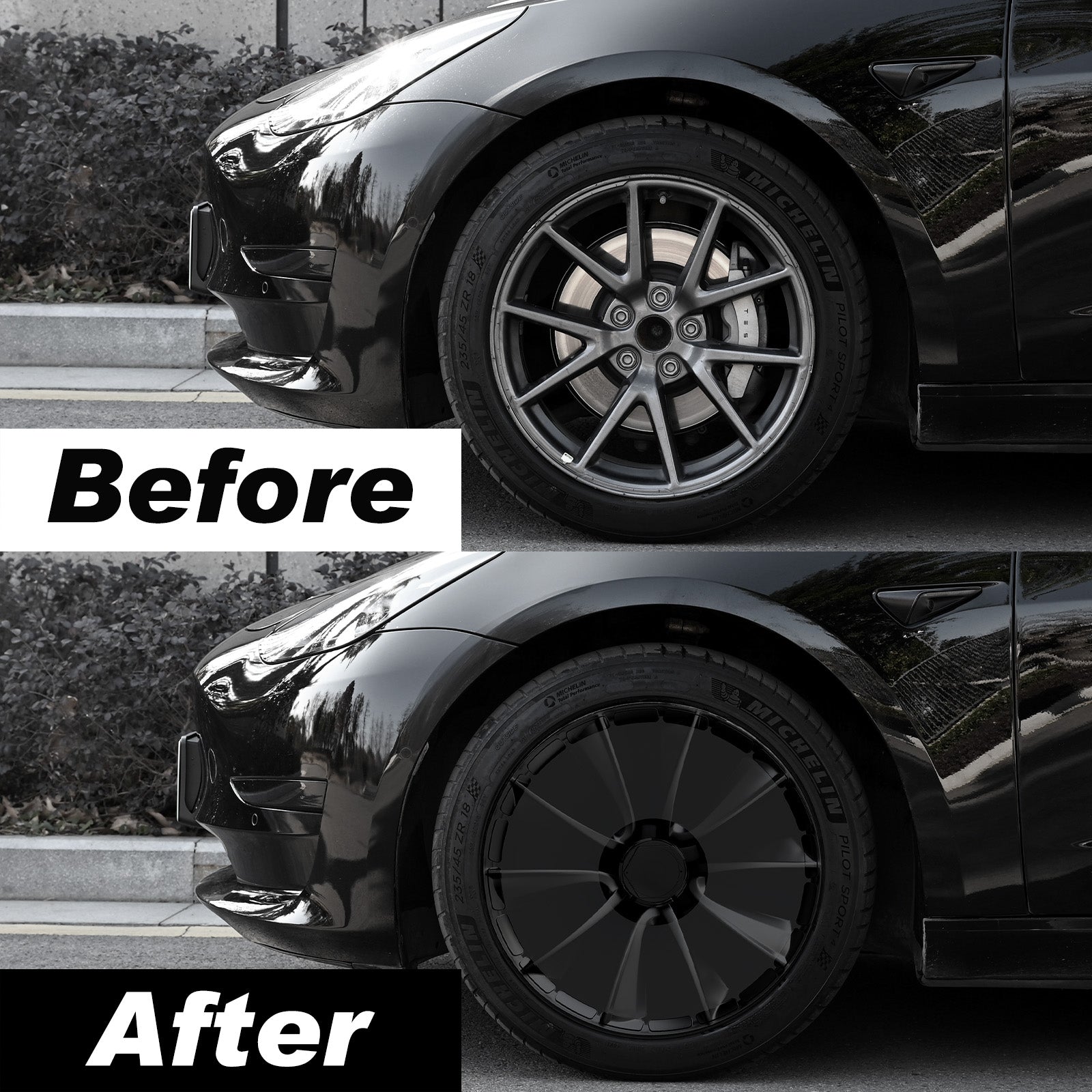 • Sporty Aesthetic Boost: Transform your Model 3 with our full coverage wheel covers that protect your rims from scratches. Perfectly aligned with Tesla’s minimalist design ethos, these Model 3  wheel covers add a sleek, sporty flair to your vehicle