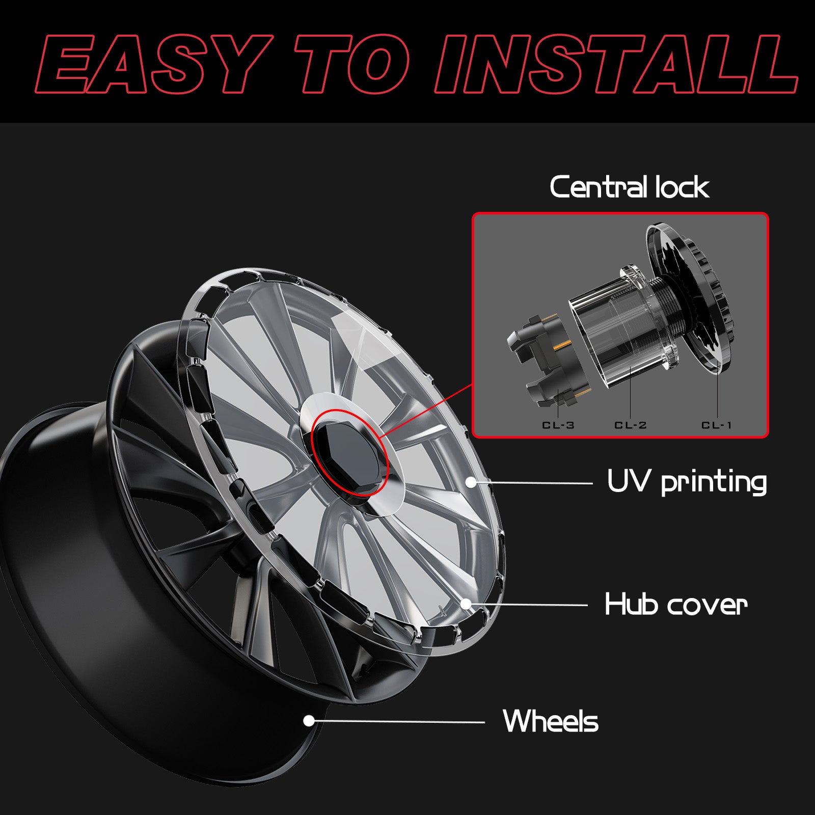 • Easy Installation: Upgrade your wheels in just seconds! Our lightweight ABS covers easily align and snap onto your wheels—no tools or adhesives required. Center lock construction ensures a secure fit with zero vibration, allowing for smooth, rattle-free driving