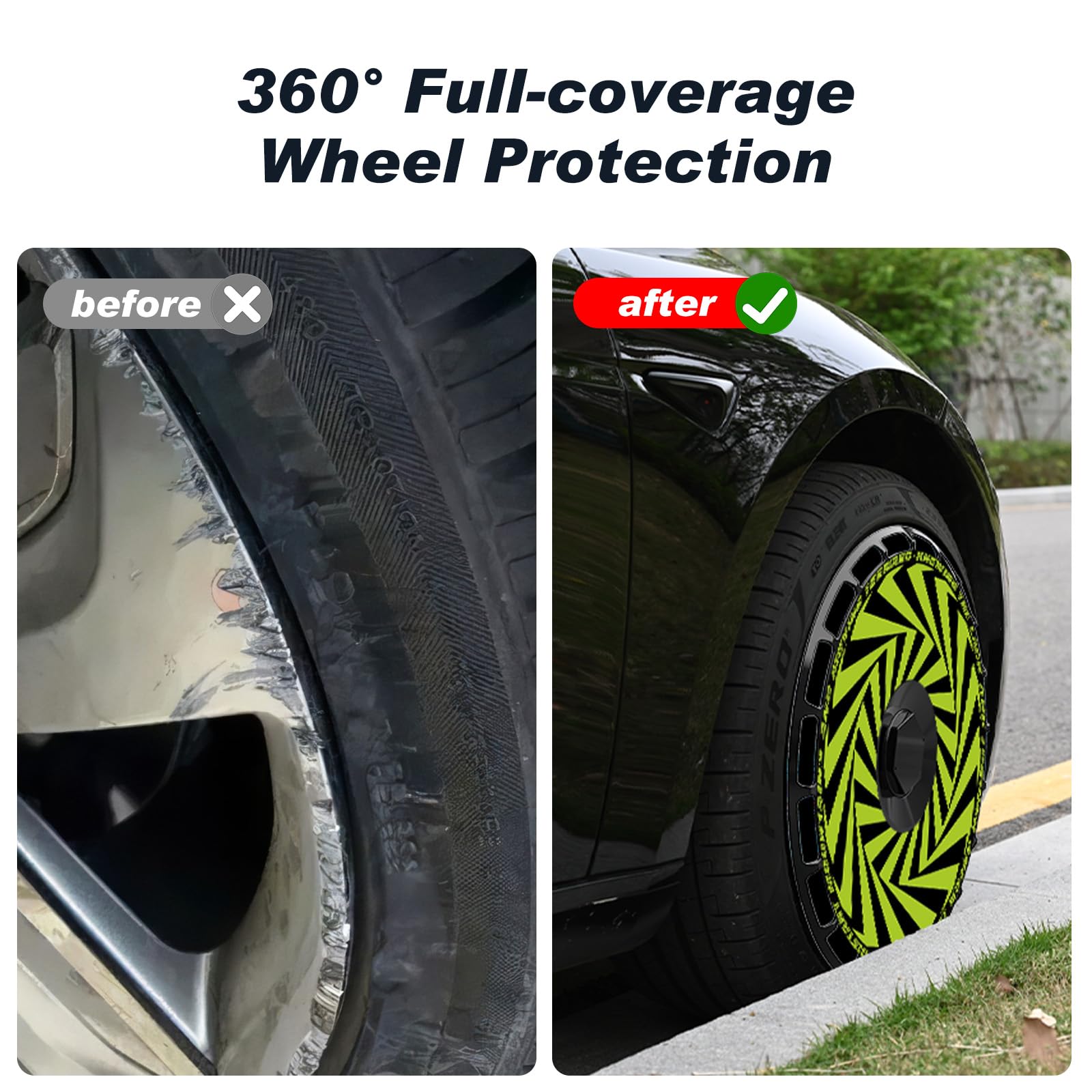 • Durable ABS Material - Made of ABS material, these rim protectors are lightweight, sturdy, and durable, which withstand harsh weather conditions, road debris, offering impact resistance for long-lasting performance.