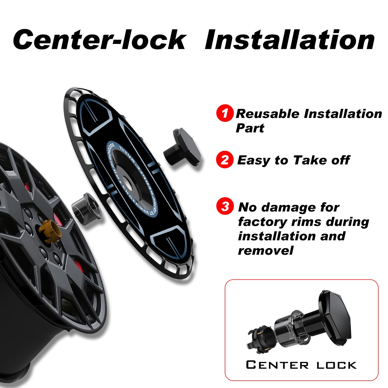 • Unique Installation - These rim protectors for Model S/X/Cybertruckwheel feature the center lock design that simply snap on the center lock and rotate it to secure the covers in place.